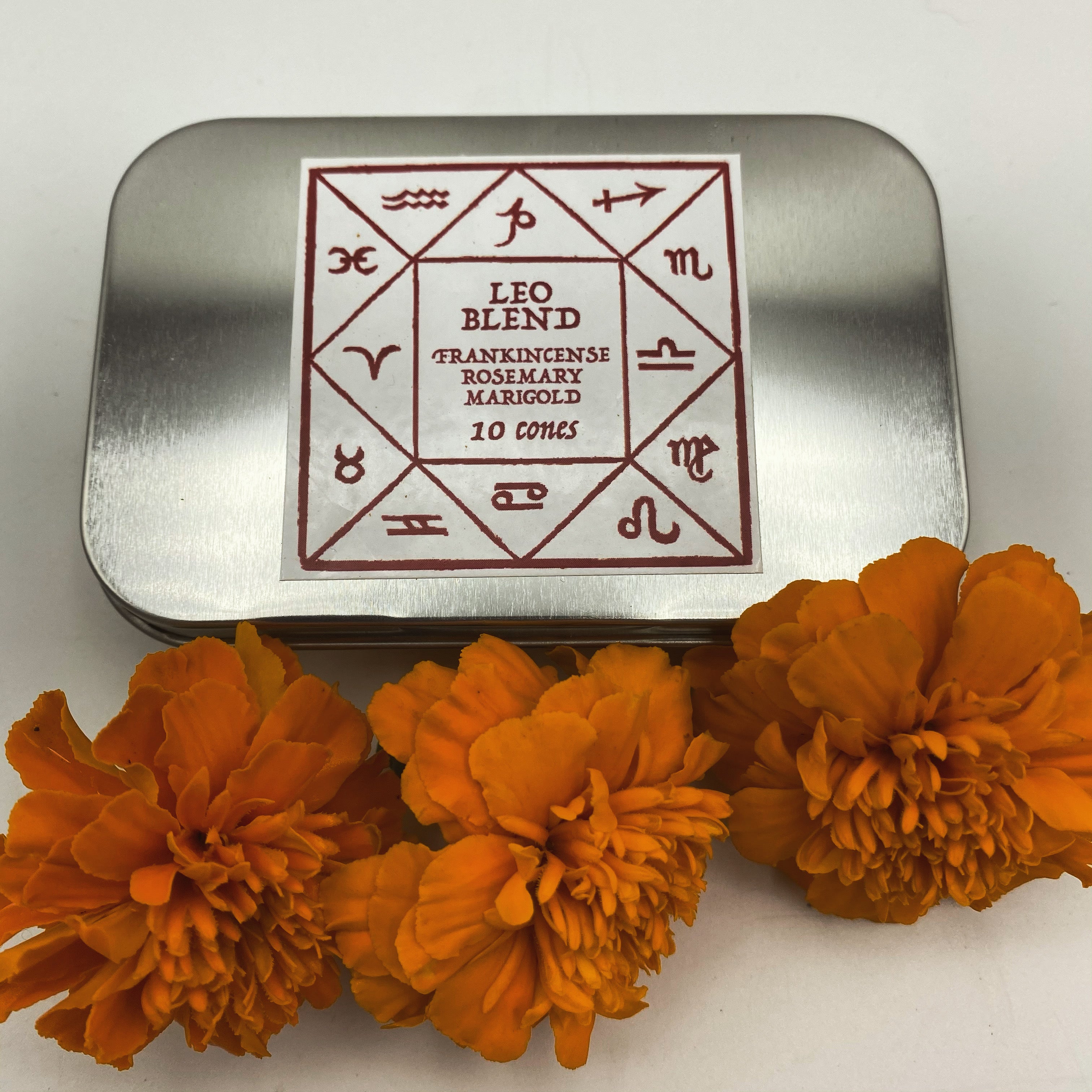 Incense Blend - Zodiac - Leo Sale! from $12.00 Qty. Add to Cart This item is currently on backorder but you can still purchase it now and we'll ship as soon as more become available. 10 hand-rolled cones, no funny business. Just organic botanicals. The best smelling, most beautiful Leo blend ever made. Tweet Previous Next